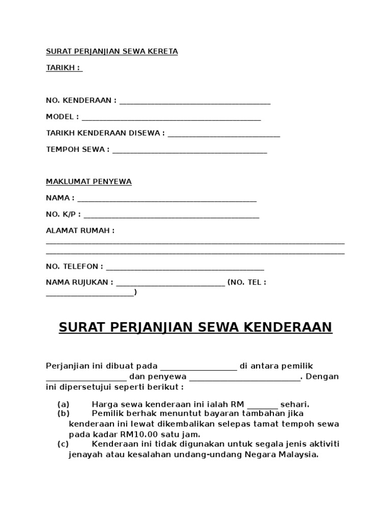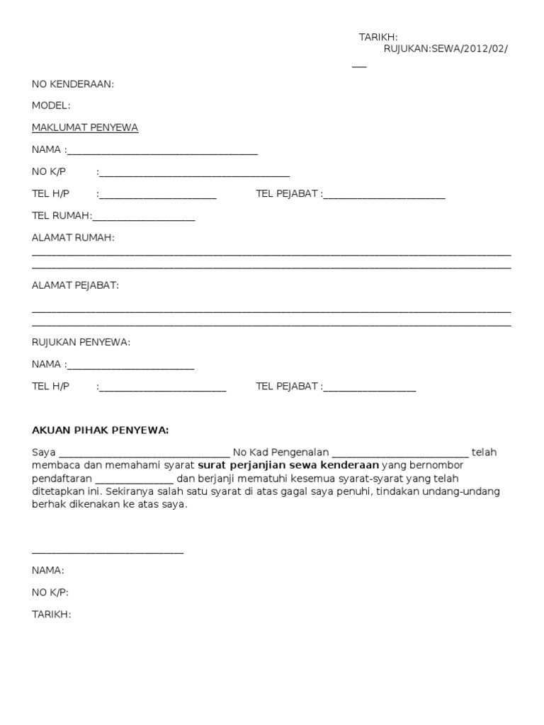 Surat perjanjian sewa kereta tarikh. Di dalam surat tersebut anda di hendaki mengisi. 41 Permohonan sempena perayaan agama - perlu dijelaskan.